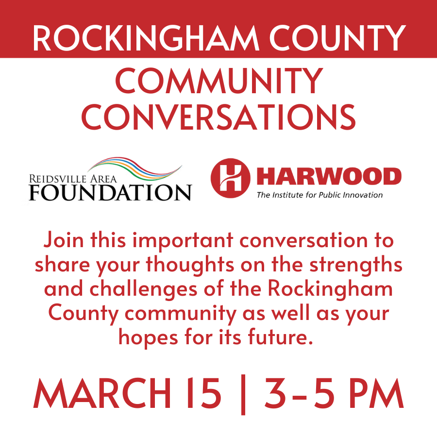 Join us as we host the Reidsville Area Foundation and the Harwood Institute for an important community conversation.